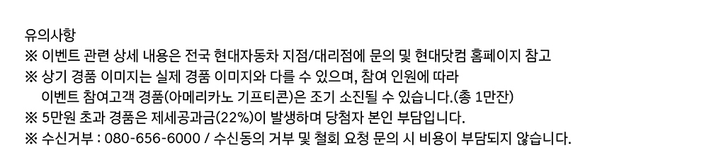 현대자동차 코세페 차량을 구매하고 LG 전자의 엠앤비 가전의 응모 기회도 놓치지 마시기를 바랍니다.