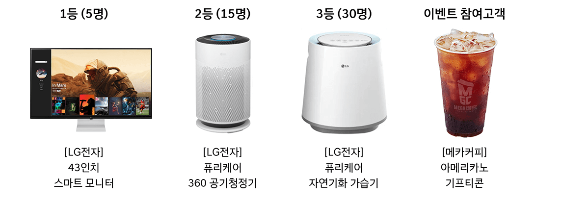 더불어 LG 가전 및 경품 이벤트의 혜택도 함께 받아가셨으면 좋겠습니다.
