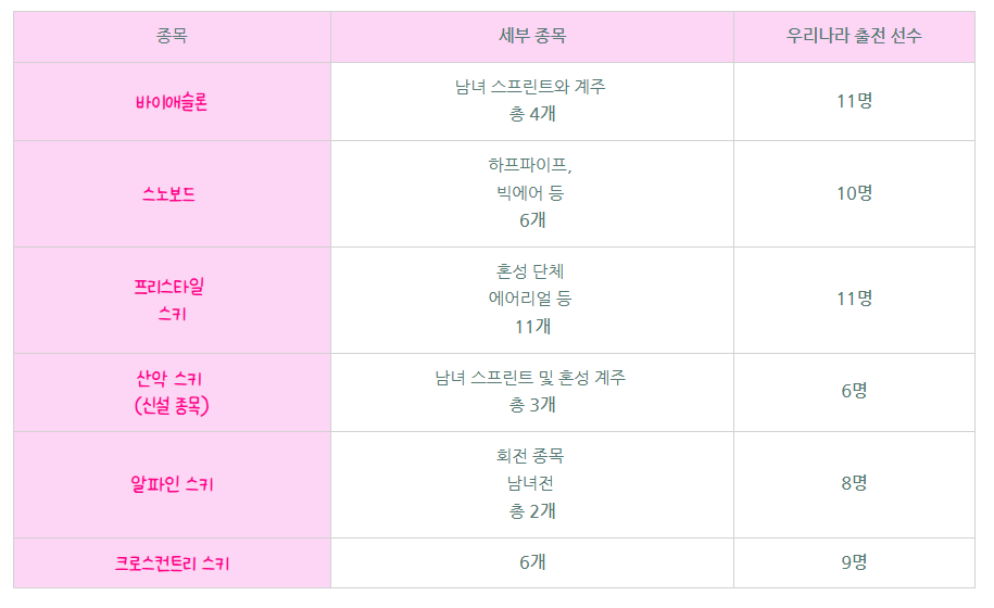 새롭게 신설된 산악 스키를 비롯한 컬링, 피겨 스케이팅등 다양한 종목에서 활약을 기대할 수 있을 것으로 보입니다.